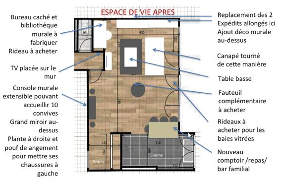 La mise en œuvre de solutions concrètes passe ici par les principes du home staging à savoir désencombrer, ré-agencer les espaces, accessoiriser et à apporter davantage de lumière.